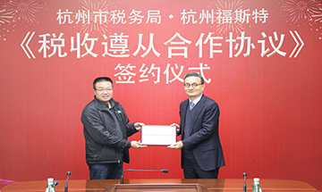 福斯特與杭州市稅務局續簽《稅收遵從合作協議》 [2022-01-14][2022-01-14]2022年1月13日上午,杭州市稅務局與福斯特《稅收遵從合作協議》簽約儀式在公司隆重舉行。國家稅務總局杭州市稅務局黨委委員、副局長申屠水路領導一行,董事長林建華出席簽約儀式。[查看詳情]