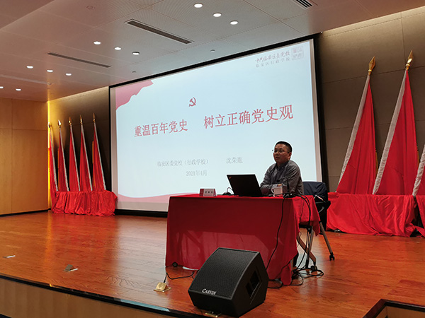 課上,沈榮胤老師首先為我們講解了中國共產黨百年黨史的發展歷程,并以如何學習、認知并確立正確的黨史觀為核心,繪聲繪色地向大家講述了正確學習、認知黨史的重要性,贏得了大家的熱烈掌聲。