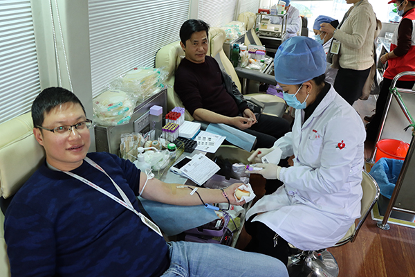 即使12月的寒冬,也抵擋不住員工們獻血的熱情。員工們有序地填表、測血壓、化驗、抽血,其中有連續(xù)多年參加獻血的老面孔,也有第一次參加的新面孔;有倒班休息在家特意趕來的、也有在崗委托代班出來的。員工們紛紛表示能為社會公益事業(yè)盡一份力非常有意義。