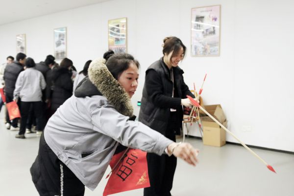 與此同時,寫福字、夾“湯圓”、投壺項目也在如火如荼地進行。“寫福字、沾福氣、納百福”,祈愿福運當頭、萬事順遂;投壺作為一項傳統的娛樂活動,具有送祝福的寓意,體現了人們對美好生活的向往;夾“湯圓”則是在規定時間內將“湯圓”夾入碗中,象征幸福團圓。職工們體驗完成四個項目,紛紛到禮品兌換處挑選自己心儀的小禮品,大家其樂融融、盡興而歸。