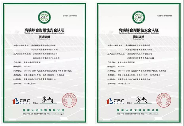至今,福斯特氟涂層背板累計出貨超一億平米,電站客戶端質量零投訴,F-氟涂層技術值得行業信賴。FIRST?透明背板均通過國家光伏質檢中心(CPVT)、TUV等第三方測試認證,產品質量監管嚴格。
