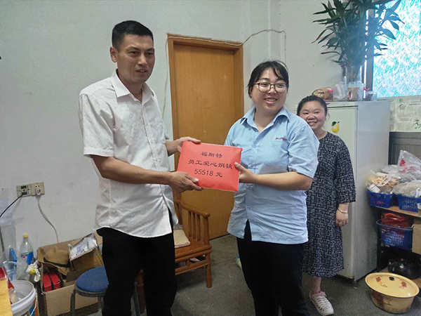 病魔無情,福斯特有愛。在得知情況后,公司發起了全員“愛心捐款倡議”。倡議一經發出便立刻得到了積極相應,大家紛紛伸出援助之手幫助楊三華度過難關。沒有儀式,沒有渲染,卻有一股暖流在公司流淌。截止5月31日,已有1042名同事參與到本次愛心捐款行動中,募集捐獻金額共計55518元。