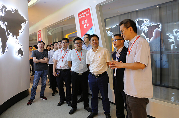 黨建交流團在公司負責人的陪同下,來到展廳進行參觀,并組織了拔河友誼賽,雙方黨員團結協作,現場氣氛熱烈。