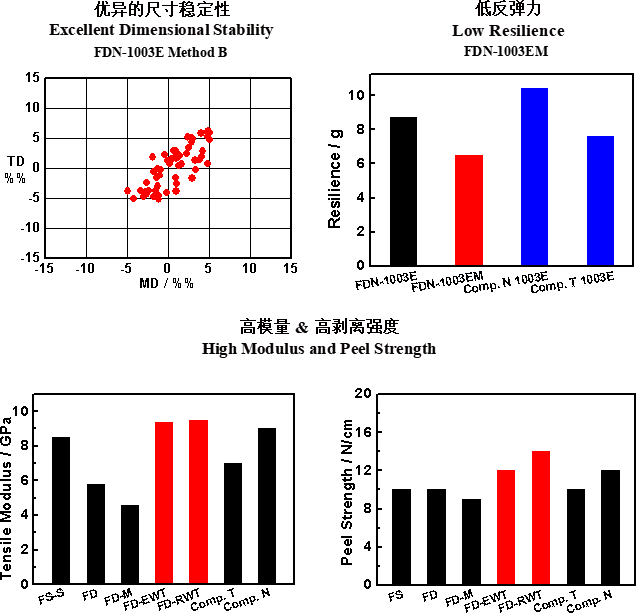 福斯特?zé)o膠型雙面板,采用自主研發(fā)的熱固性聚酰亞胺、熱塑性聚酰亞胺作為絕緣材料,經(jīng)過(guò)一定的疊構(gòu)設(shè)計(jì)生產(chǎn)得到。產(chǎn)品具有高剝離強(qiáng)度和高拉伸強(qiáng)度,優(yōu)異的尺寸穩(wěn)定性和良好的耐熱性,可用于制造高性能單面板和多層板。根據(jù)客戶(hù)端不同的應(yīng)用需求與應(yīng)用場(chǎng)景,設(shè)計(jì)了具有不同特性的產(chǎn)品系列。