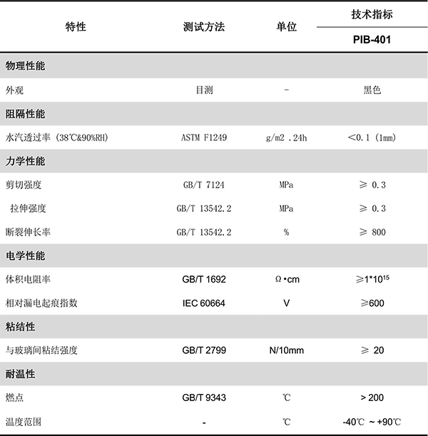 PIB-401 系列邊緣密封膠一款丁基型光伏組件邊緣密封膠,其具有優(yōu)異的水汽阻隔性能、粘結(jié)性和長期耐候性能,與常規(guī)封裝材料如 EVA、POE 等都具有良好的兼容性,用于敏感性電池CIGS、CdTe、HJT、鈣鈦礦等光伏組件的邊緣密封可以有效延緩組件在戶外高溫高濕環(huán)境下水汽侵蝕。